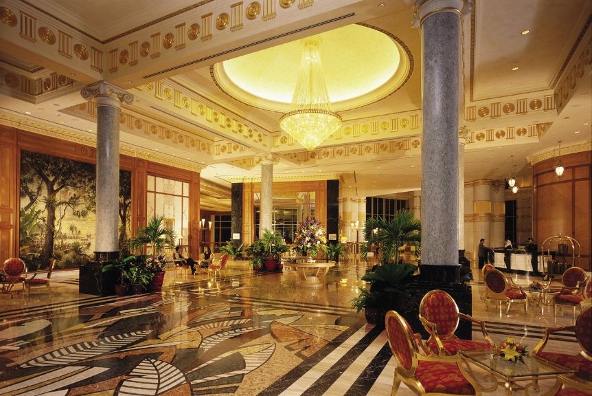 Viesnīca ir no balta marmora, ar zelta greznojumiem un apzeltītiem gaismekļiem. Atvērta 2000. gadā (celtniecība ilga 6 gadus), un tajā strādā 800 darbinieku. Gultas veļa un dvieļi ir vislabākās kvalitātes. Sākumā celta kā sultāna brāļa rezidence, bet savu lielo izmaksu dēļ tā tika pārveidota par viesnīcu.