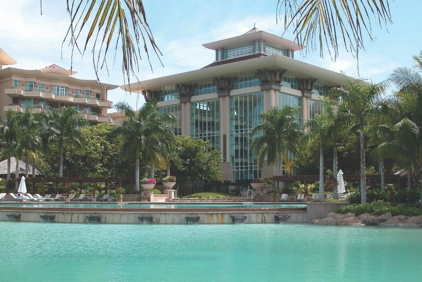 Restorāns Li Gong pie ūdenskrituma piedāvā ķīniešu ēdienus. Restorāns pie jūras Pantai cienā savus viesus ar svaigiem jūras produktiem. Spaghettini resorānā var nobaudīt īstus itāļu ēdienus, kā arī dažādas pasaules delikateses. Restorāns ar panorāmas skatu Atrium Café piedāvā bagātīgas brokastis zviedru galda stilā, kurā vara nobaudīt gan tematisko zviedru galdu gan plašu starptautisko ēdienu klāstu. Spike Lounge restorāns atrodas golfa klubā, kur pasniedz brokastis un dažādas uzkodas. Bunker Café piedāvā vieglas uzkodas un gardumus. Bet viesnīcas recepcijas bārs pasniedz pēcpusdienas tēju ar gardām maizītēm un kūkām izsmalcinātā britu stilā, pat oficianti apkalpo viesus baltos cimods un pieved tēju īpaši smalkos ratiņos. Bet, ja nevēlieties tēju, tad var pasūtīt jebkuru citu dzērienu un izbaudīt brīnišķīgo skatu uz jūru un grezno viesnīcas interjēru.