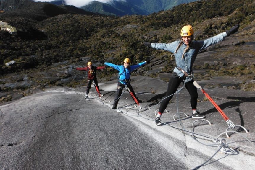 Via Ferrata (translated from Italian “metal path”) is a mountain path equipped with metal structures and safety ropes for climbing. The Via Ferrata on Mount Kinabalu is the highest such trail in Asia.