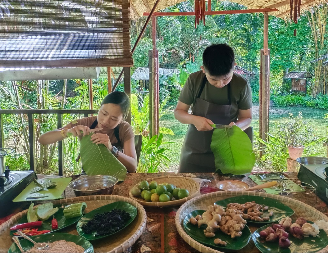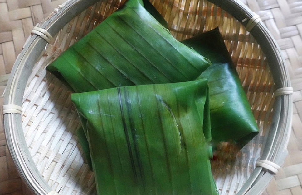 11:30 The third master class on cooking Linopot is rice cooked in a special way and also beautifully packaged and wrapped in a large leaf.